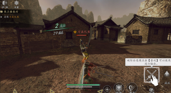 2、【重击技】可以击破正在防御的敌人,破防后连续点击【普攻】可以使用连招进行输出。