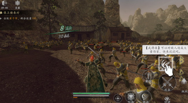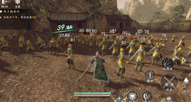 3、操作与战斗系统,根据敌将状态自动衔接反击或追击,配合无双技清屏制敌,支持自由走位,灵活操作见招拆招。