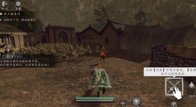 1、点击【攻击】可进行普攻,【连续】点击可以继续连招。