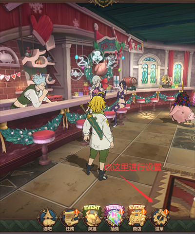 1、进入到七大罪光与暗之战国际服游戏当中,点击右下角的设置按钮,如图位置。