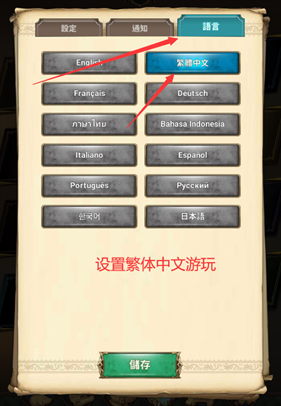 4、我们选择如图位置的语言,设置为繁体中文进行游玩!