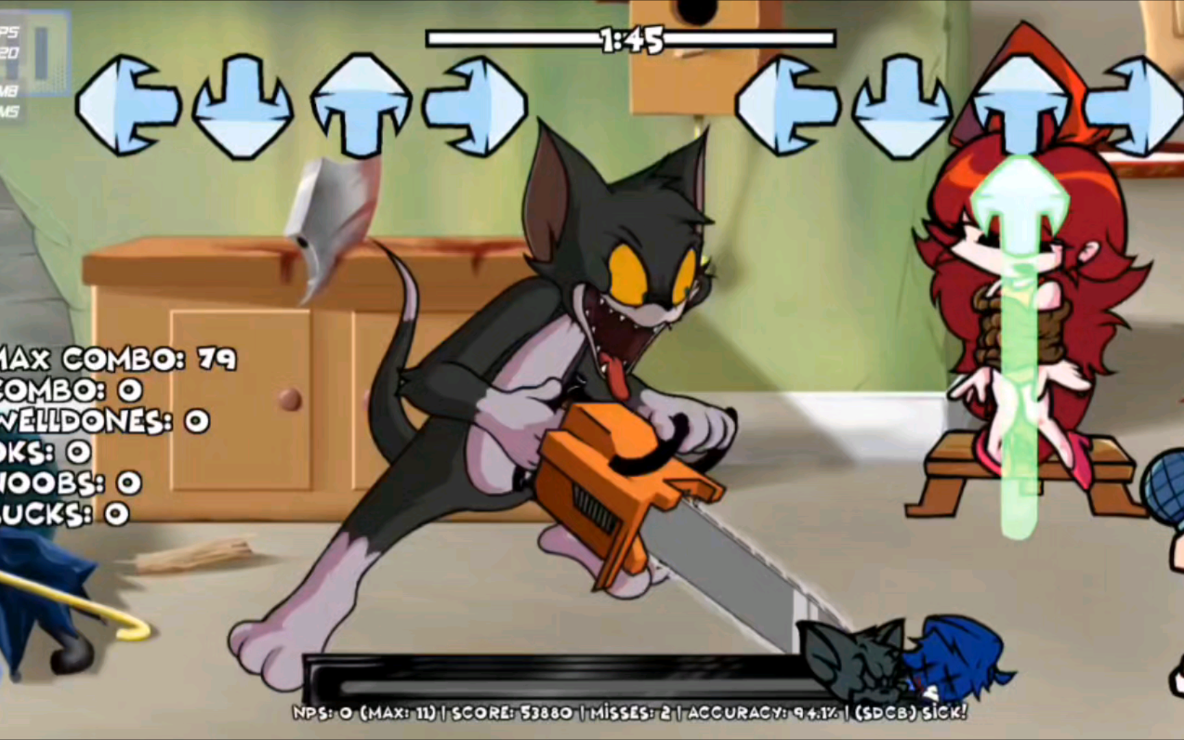 地窖秀(猫和老鼠模组)是个加入的猫和老鼠的fnf音乐节奏游戏。在地窖秀我们可以看到猫和老鼠的各种形态,选择不同的音乐,开始你的上下左右音乐节奏触碰,完美触发节奏,感受最极致的节奏,打出高分。地窖秀回合制的音乐对战,将眼前的对手干掉,不要分心,手眼协调起来。可以通过练习方式训练你的节奏卡点。