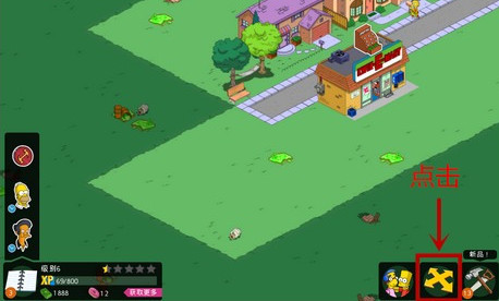 1、点击辛普森一家画面下方的移动标识,进入施工状态;