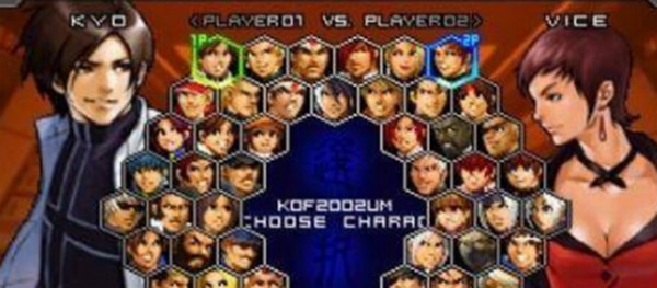 而拳皇2002风云再起则只需要将选框移动至中间隐藏区域即可选择。