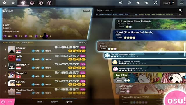 3、Osu音游中每首歌有三种难度,即使是菜鸟也可以在不死模式下享受到乐趣。