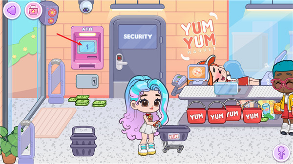 6、场景中的一些道具也是可以互动的,如这里的ATM机,点击即可掉钱。