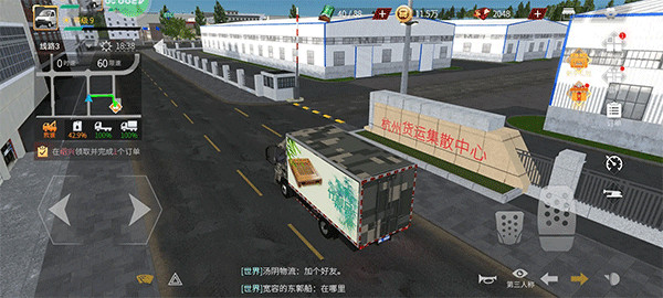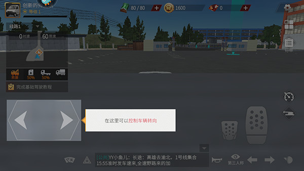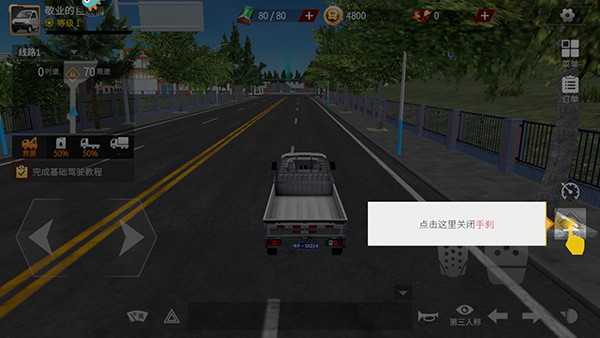 1、进入卡车人生手游官方正版,右侧分别是订单,接收,并完成任务,右边加速减速,左边控制方向,右下的小眼睛自动回正;