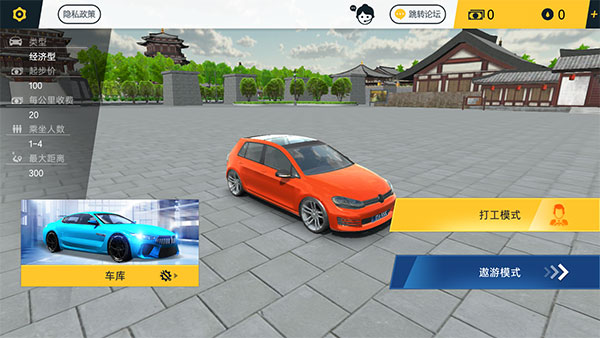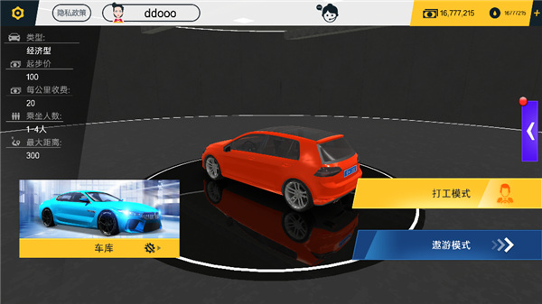 4、此时你已经有3辆车了,按照前三个步骤,一般只需要一小时。跑几单凑够1w块,选遨游模式。进入游戏后不要相信1000km一个金币。这游戏bug之一就是遨游模式实际1km1金币。跑个1000km实际获得1000币,把车和场景买完绰绰有余。