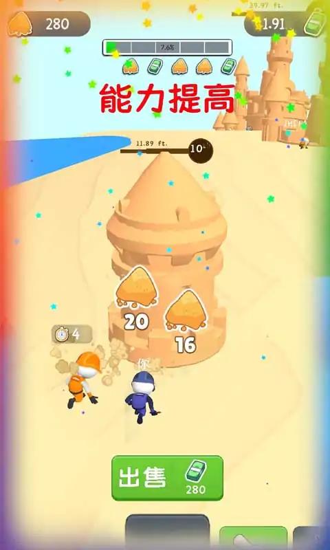 1.有趣的建筑玩法带来刺激的游戏操作,玩家可以设计和建造个性化的沙堡。