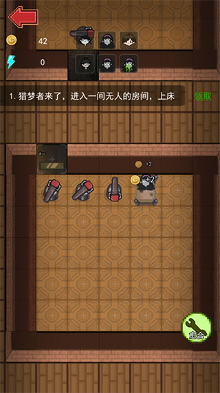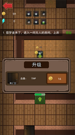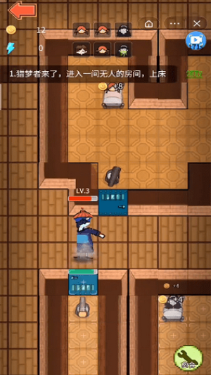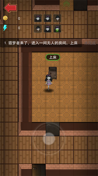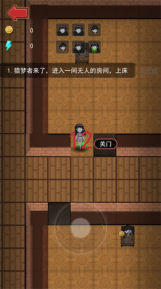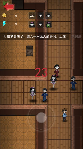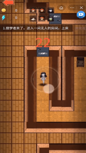 2、进入游戏后,玩家需要在规定的时间内进入一间无人的房间,上床,否则会被猎梦者杀害;