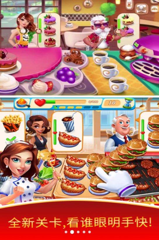 2)多样的关卡设置,每个关卡都有独特的挑战,考验你的反应速度和烹饪技巧。