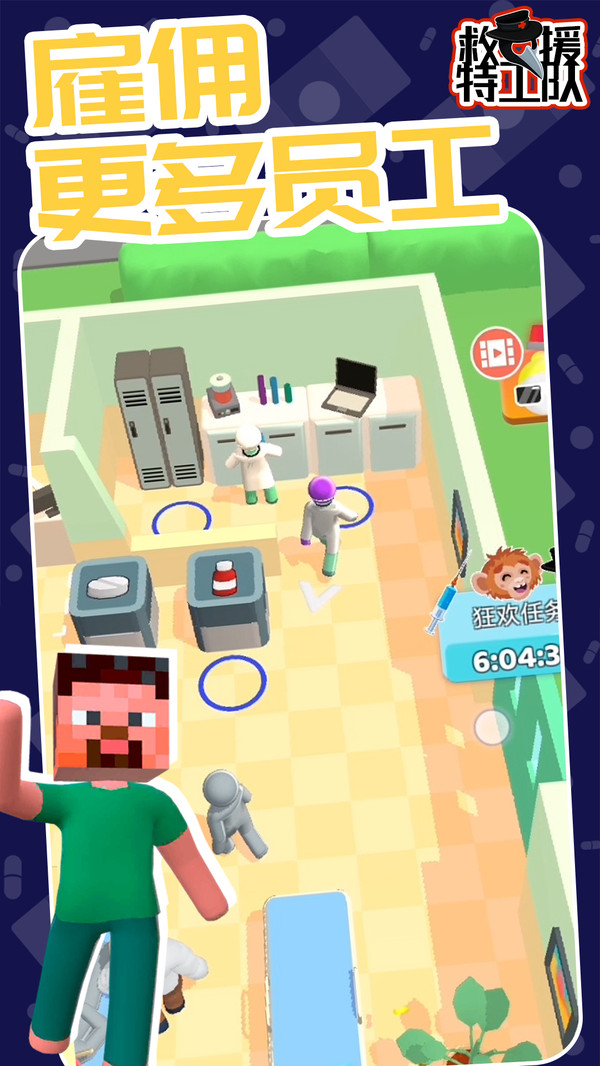 在救援特工队这款游戏当中,为我们大家带来一个非常好玩的模拟类游戏,游戏当中为我们大家带来了非常真实的场景,整个画质也是比较的高清流畅,让所有的玩家朋友们都可以体验到非常真实的医疗环境,喜欢的小伙伴们就可以及时的下载体验,全部采用了卡通的画面打造,能够让所有年龄段的玩家加入进来哦。