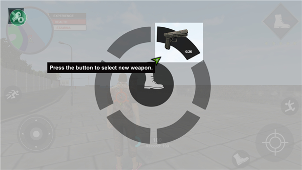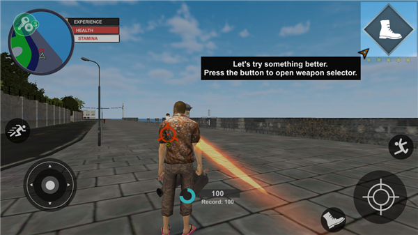 3、当受到枪击时,点击左上角的靴子;
