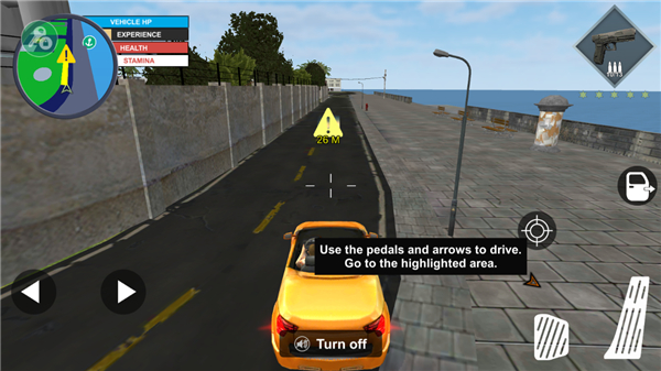 8、然后左边控制方向,右边控制油门刹车,在道路上开启行驶吧;
