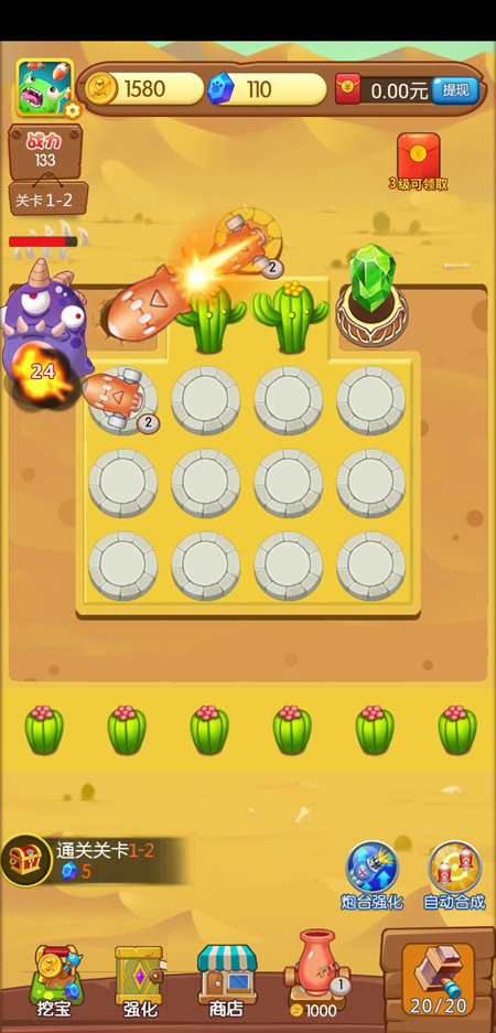 *购买强大的炮塔,使用红包购买各种炮塔,提高战斗力。