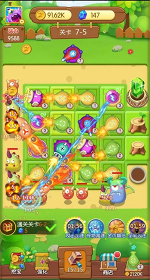 1、通过在关卡中放置武器来防御获胜,会让你越来越强大,有奖励;