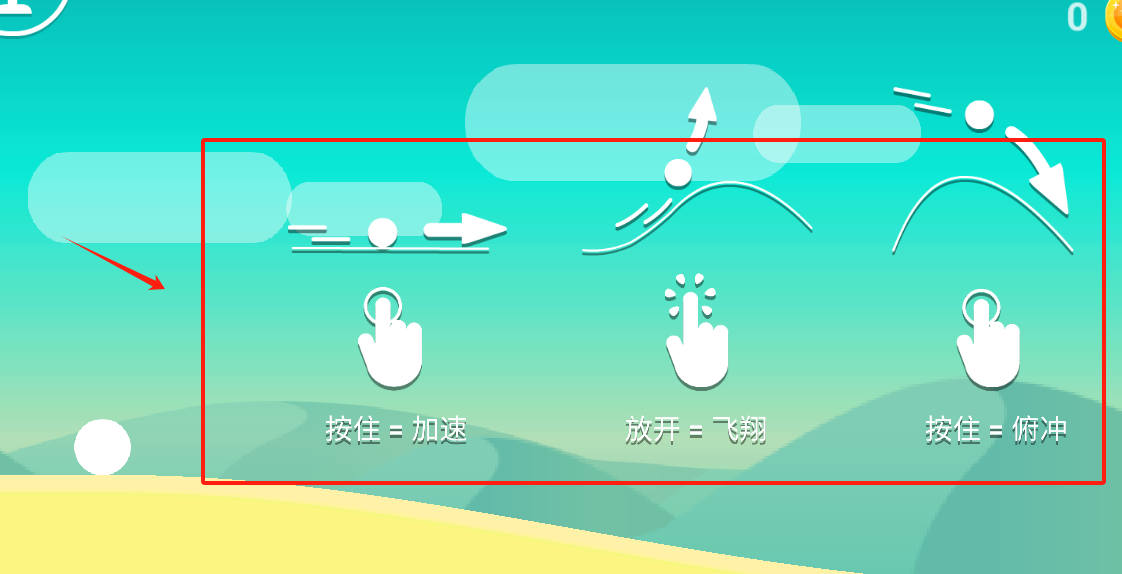 1、按住屏幕让小球加速往前跑,松开手指小球就能飞起来,再按住还能俯冲下去。