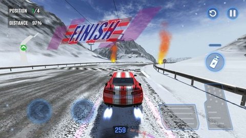 每个关卡的环境以及赛道都是不一样的,有时候可能会遇到雨雪天气道路非常的湿滑,玩家在这里一定要掌控赛车的平衡程度,这样才不会翻车。