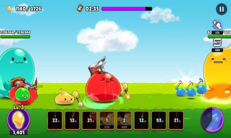 1、下载安装该游戏的最新版,打开进入游戏点击绿色按钮可升级史莱姆的攻击力。