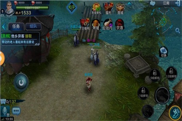 游戏设有中原、江南、北漠、南疆、西域,五张广阔大地图供你自由探索;