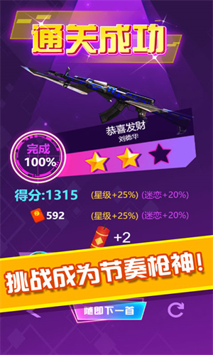 在这个游戏当中,玩家就必须要去跟着音乐的节奏来瞄准,进行射击挑战,成为节奏枪神,通关成功后,我们大家也可以获得相对应的奖励,能够带给大家无尽的乐趣。