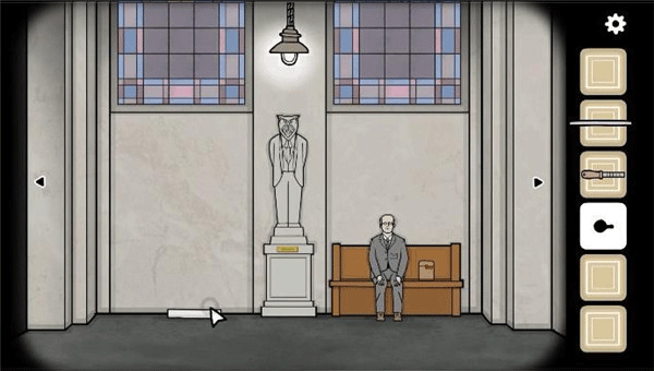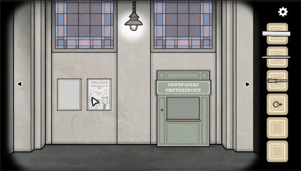 9、去到海报旁边的照相馆,装上把手,拉开帘子,获得报纸。把报纸拿给坐在长椅上的男人,在他看报纸的时候点击他右边的口袋,获得硬币。