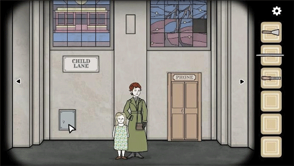6、回到母女旁边,发现劳拉不见了。点击右边的电话亭,用钥匙打开门,然后拨打24355,发现需要一枚硬币。
