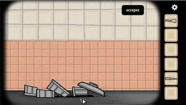 9、我们回到放箱子的地方,去看排水管,用锉刀将断裂的水管取下来,获得断裂的水管和钥匙。
