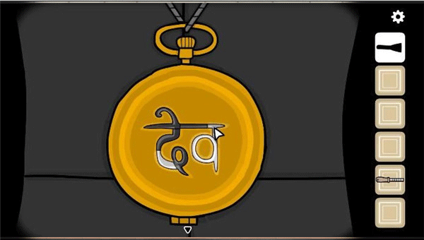 6、回到婴儿车附近,点击女士身上的怀表,就能发现这个符号,然后我们参考海报上的图案来描绘这个图案,需要按照左上、左下、右的顺序来解锁,会出现10点15的时间。
