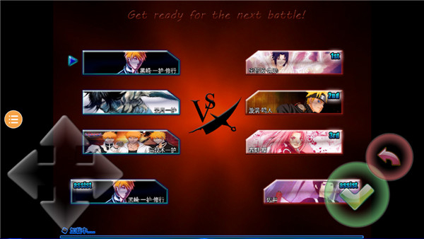 1、选择人物,开始游戏,选择可变身的人物, 如鸣人,一护,开始战斗。
