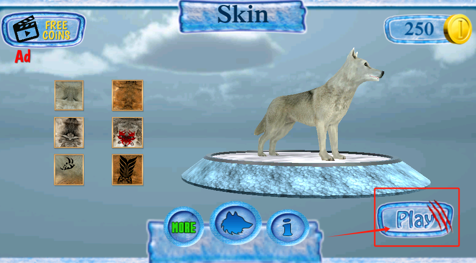 2、左边选喜欢的狼皮肤,点右下角Play开始,上方金币能买新外观。