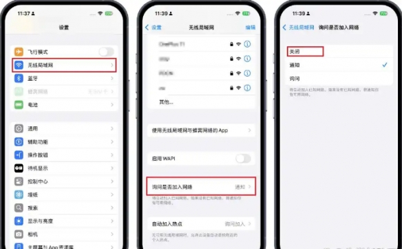 操作步骤:在【设置】-【无线局域网】中关闭【询问是否加入网络】。