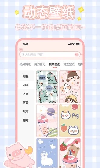 1、软件内包含了许多分类,如视频壁纸、动态壁纸等等,可供用户任意选择喜欢的做壁纸;