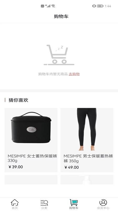 1、打开美信优选商城,在“会员中心”一栏找到并点击“积分商城”按键;