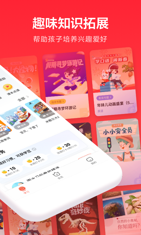 碎片化时间轻松学习,趣味进阶宜坚持,老师带领,社群同班互相鼓励,激发孩子学习兴趣;