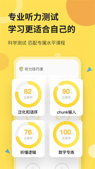 3、实时反馈和评估:系统会自动评估用户的听力水平,并提供实时反馈和建议,帮助用户及时调整学习策略。