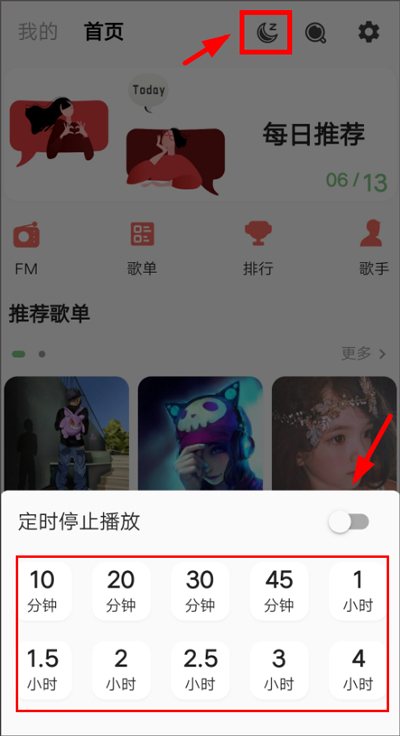 3、设置定时停止播放