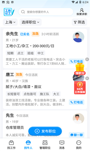 这里覆盖了各类行业的工作,各位招工找工作的用户能轻松找到自己需要的工作和人员。