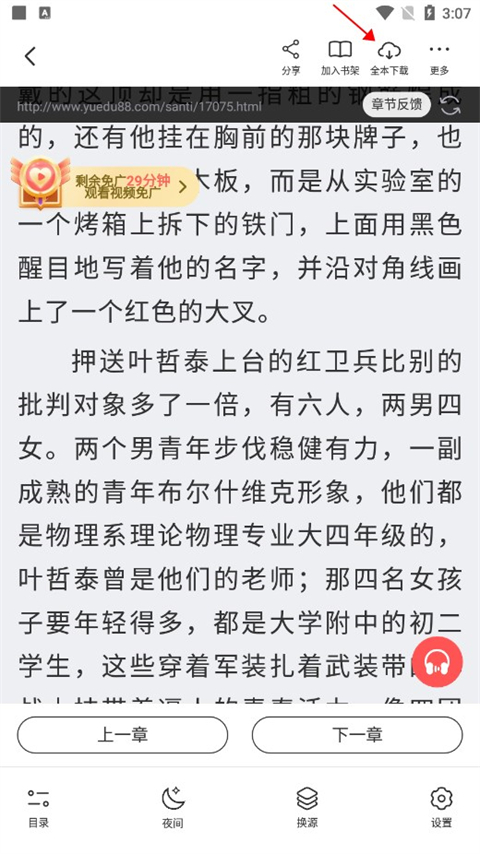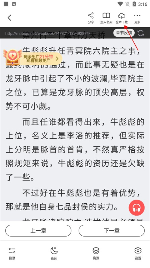 4、然后轻点屏幕唤起功能,找到右上角的全本下载。