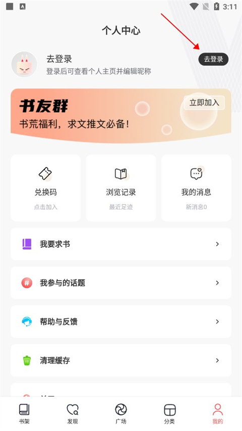 1、进入到软件之后找到我的界面,点击去登录选项。