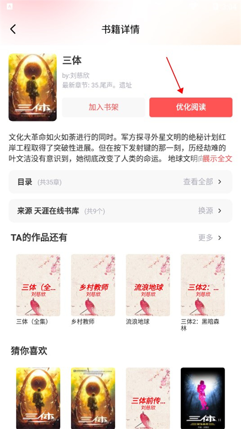 3、点击小说页面的优化阅读。