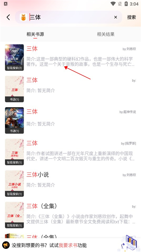 2、在下拉的结果当中找到该小说点击进入。