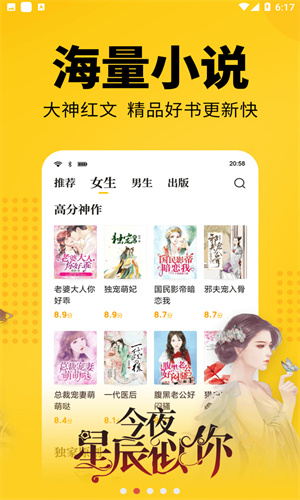2、优质内容:大量完结、连载小说,出版小说内容品质达到最优。
