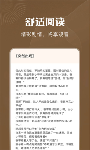 2、阅读舒适、多种阅读主题、夜间模式、翻页效果随意切换。