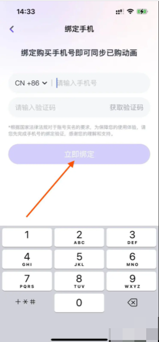 4、在页面中输入手机号和验证码,点击【立即绑定】即可。
