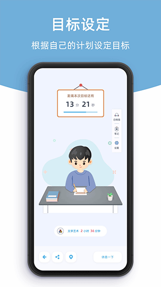 5、之后就会进入学习倒计时,学习完成后,还可对这次的学习进行总结。