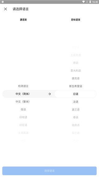 1、下载安装好翻易通app,点击进入选择需要翻译的语言;