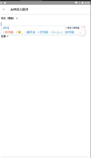 2、选择完成之后,点击输入文字即可进行翻译,小编这里以对不起为例子;