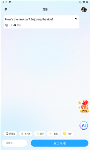 1、支持用户在线自由选择里面的口语场景和主题,随时进行流利的说英语。