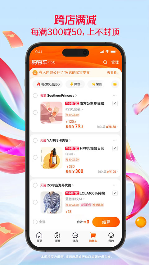 2、跨店满减:跨店满减商品,每满300减50,上不封顶